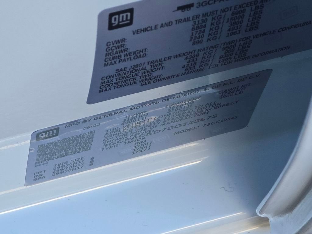 10-Speed Automatic, Black Cloth, 10-Way Power Driver Seat w/Lumbar, 12.3 Multicolor Reconfigurable Digital Display, 120-Volt Interior Power Outlet, 3.23 Rear Axle Ratio, All-Star Edition, Apple CarPlay/Android Auto, Auto-Locking Rear Differential, Bluetooth® For Phone, Chrome Mirror Caps, Color-Keyed Carpeting Floor Covering, Convenience Package, Deep-Tinted Glass, Dual Rear USB Ports (Charge Only), Dual-Zone Automatic Climate Control, Electronic Cruise Control, EZ Lift Power Lock & Release Tailgate, Front dual zone A/C, Front Rubberized Vinyl Floor Mats, Fully automatic headlights, HD Rear Vision Camera, Heated Driver & Front Outboard Passenger Seats, Heated Power-Adjustable Outside Mirrors, Heated Steering Wheel, Inside Rear-View Mirror w/Tilt, Integrated Trailer Brake Controller, Keyless Open & Start, Lane Keep Assist w/Lane Departure Warning, LED Cargo Area Lighting, Low tire pressure warning, Manual Tilt/Telescoping Steering Column, Occupant sensing airbag, OnStar Services Capable, Power Front Windows w/Driver Express Up/Down, Power Front Windows w/Passenger Express Down, Power Rear Windows w/Express Down, Preferred Equipment Group 1LT, Rear 60/40 Folding Bench Seat (Folds Up), Rear Rubberized-Vinyl Floor Mats, Remote Start Package, SiriusXM w/360L Trial Subscription, Standard Suspension Package, Standard Tailgate, Steering Wheel Audio Controls, Teen Driver, Telescoping steering wheel, Tilt steering wheel, Tire Pressure Monitoring System, Trailering Package, Variably intermittent wipers, Wi-Fi Hot Spot Capable, Wrapped Steering Wheel.